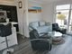 Das helle freundliche Wohnzimmer verfügt über eine Couch mit Schlaffunktion sowie 2 gemütliche Sessel und einen Esstisch für 4 Personen. Der Raum ist mit Designer-Planken ausgelegt und lässt sich durch elektrische Außenrollos verdunkeln. Vom Wohnzimmer gelangt man direkt auf den Balkon, der über eine elektrische Markise verfügt.