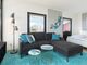 Modernes, hell gefliestes Bad mit Dusche, WC und Waschbecken.